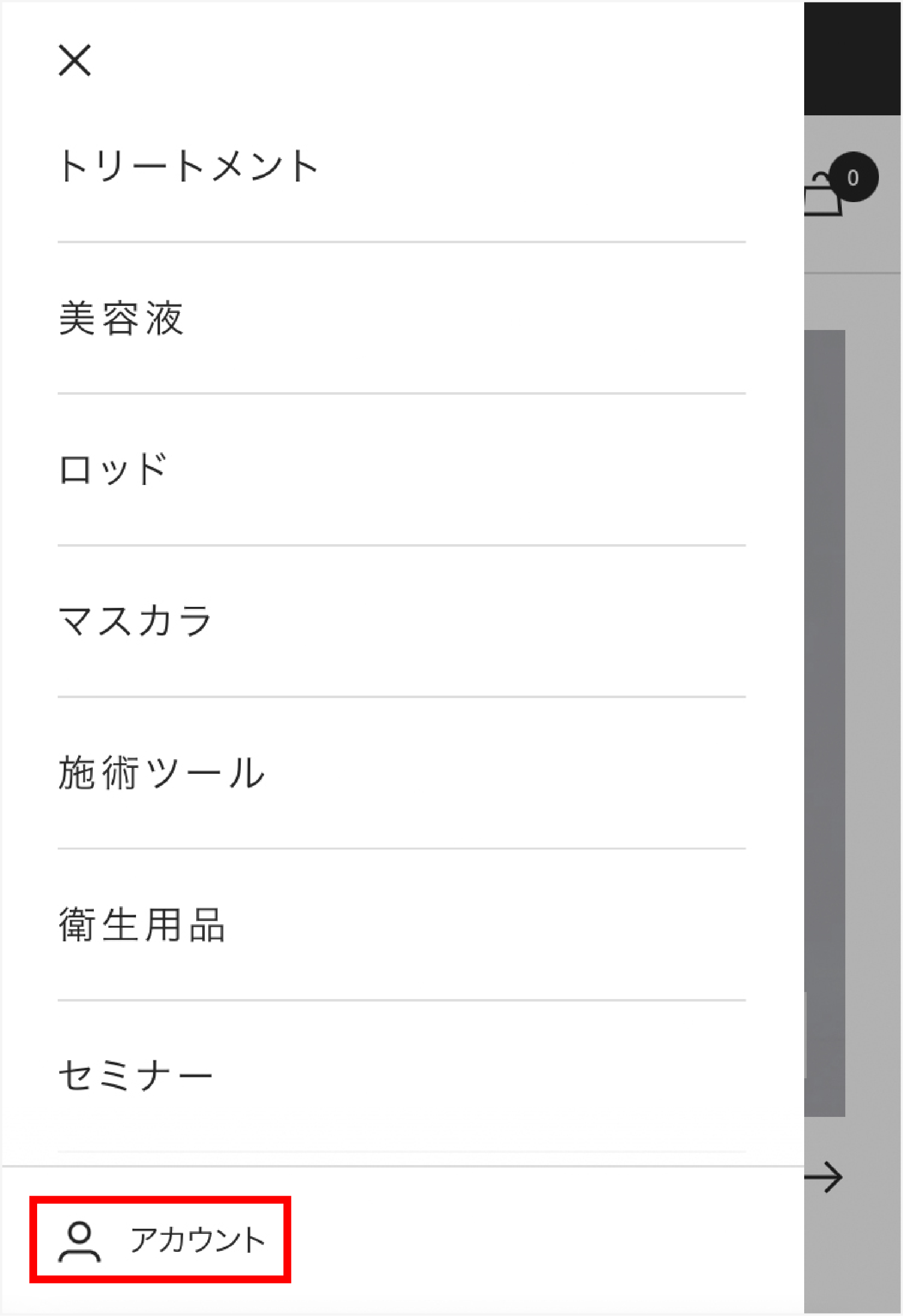 メニューが開いたら、「アカウント」を選択してください。