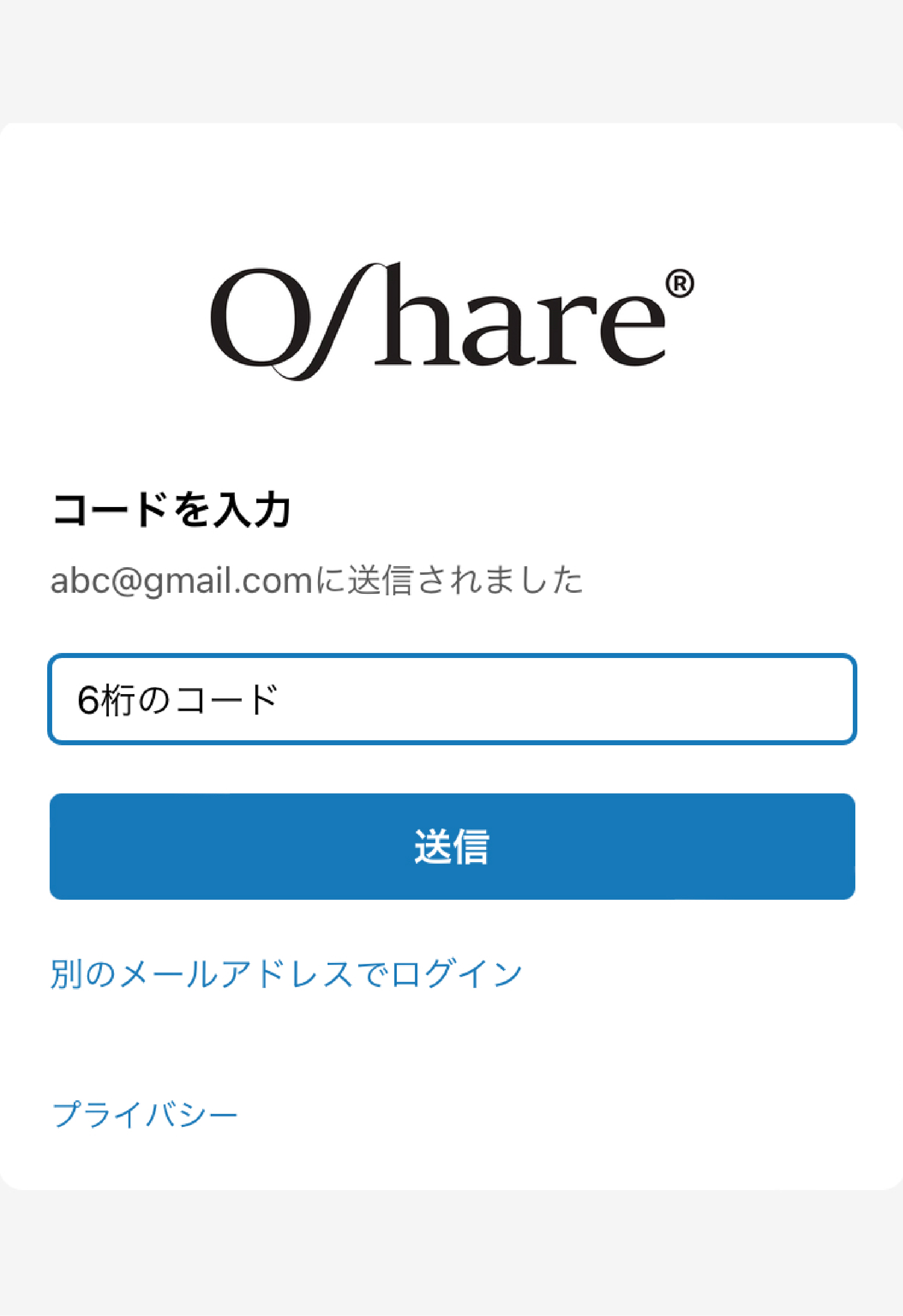 6桁のログインコードを入力してください。