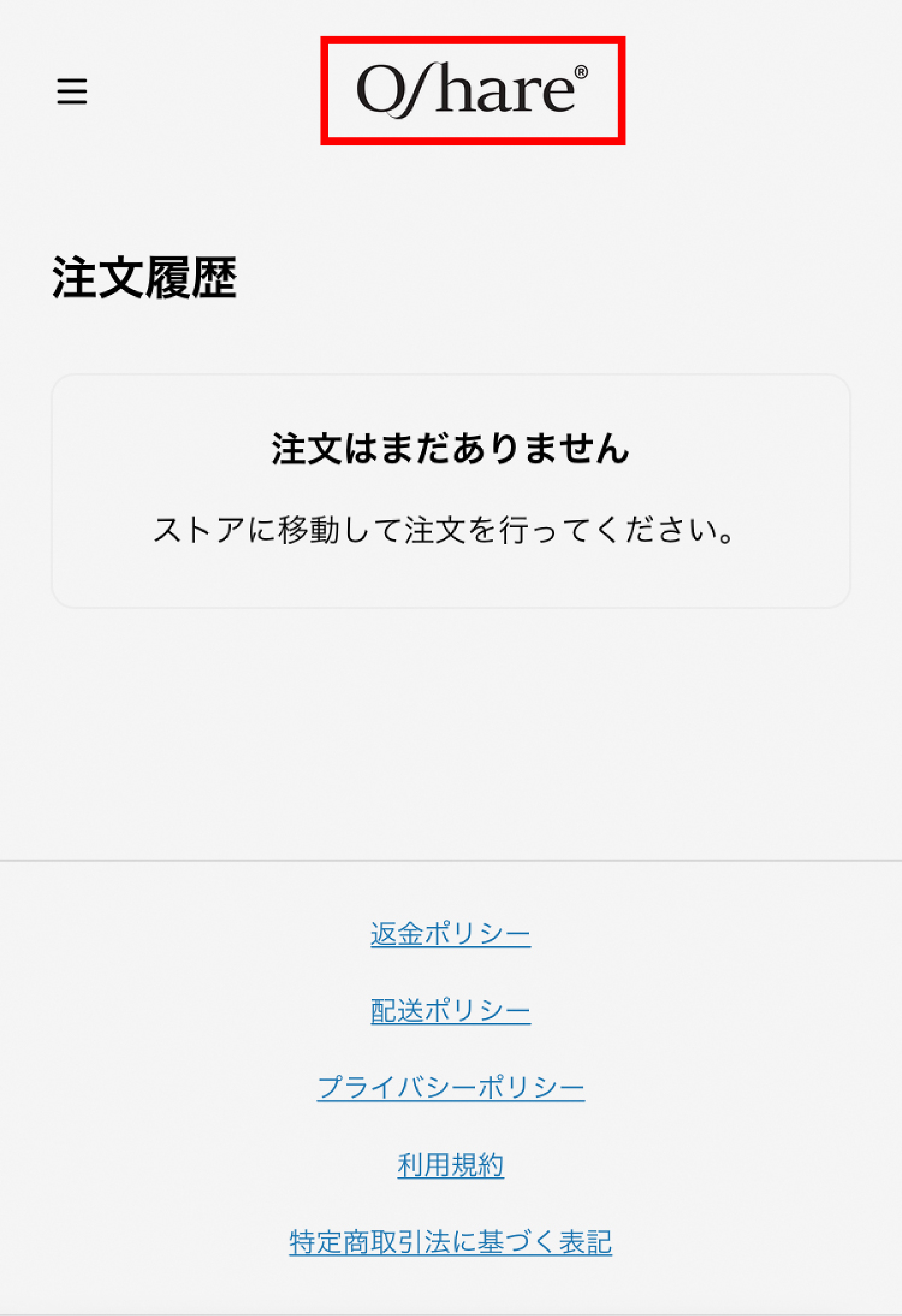 画面が注文履歴に移動しますが、引き続き商品を購入するには、ロゴアイコンをタップしてトップページに戻ります。