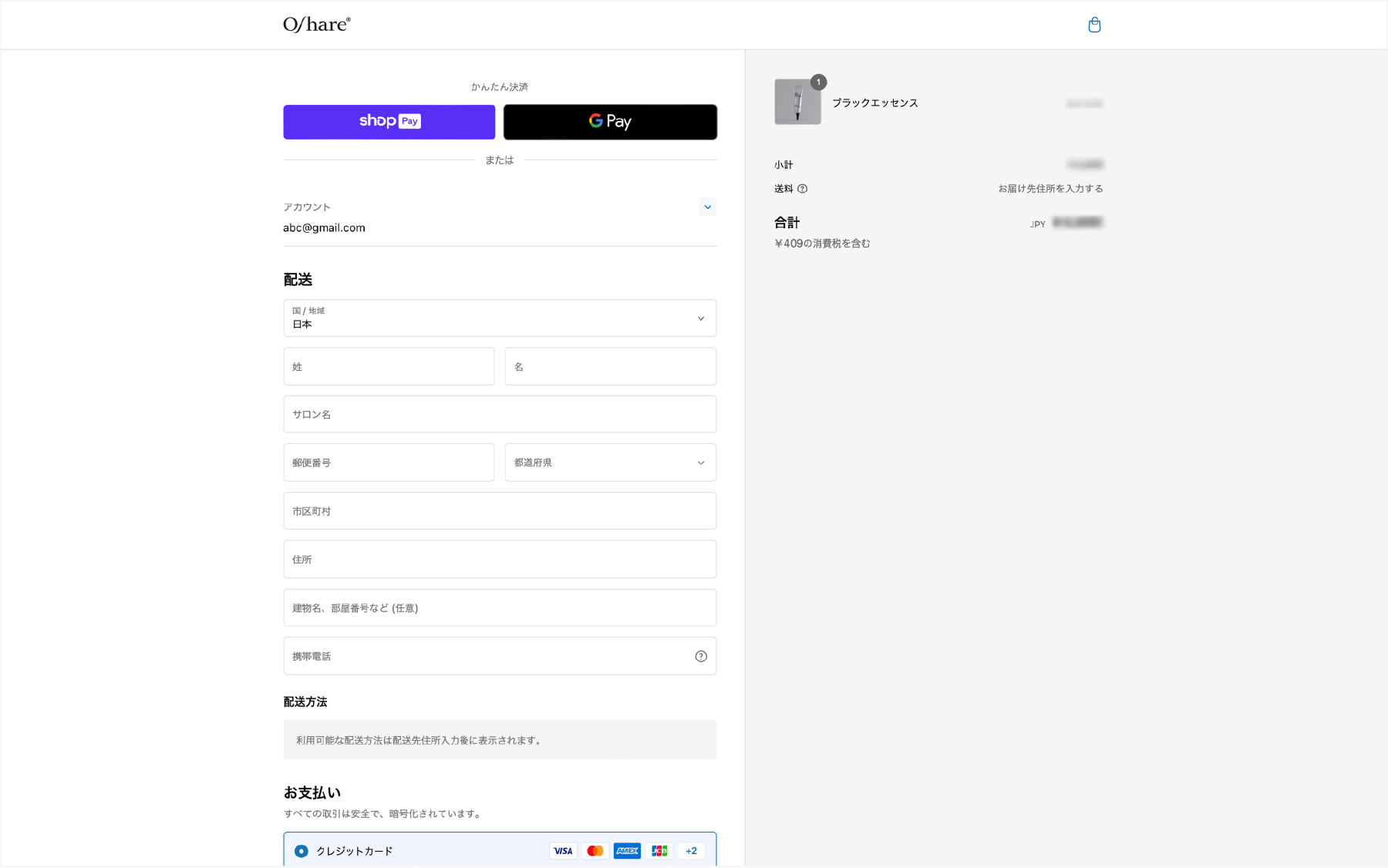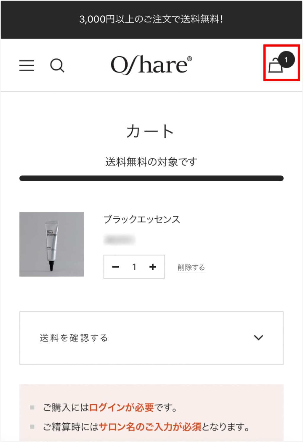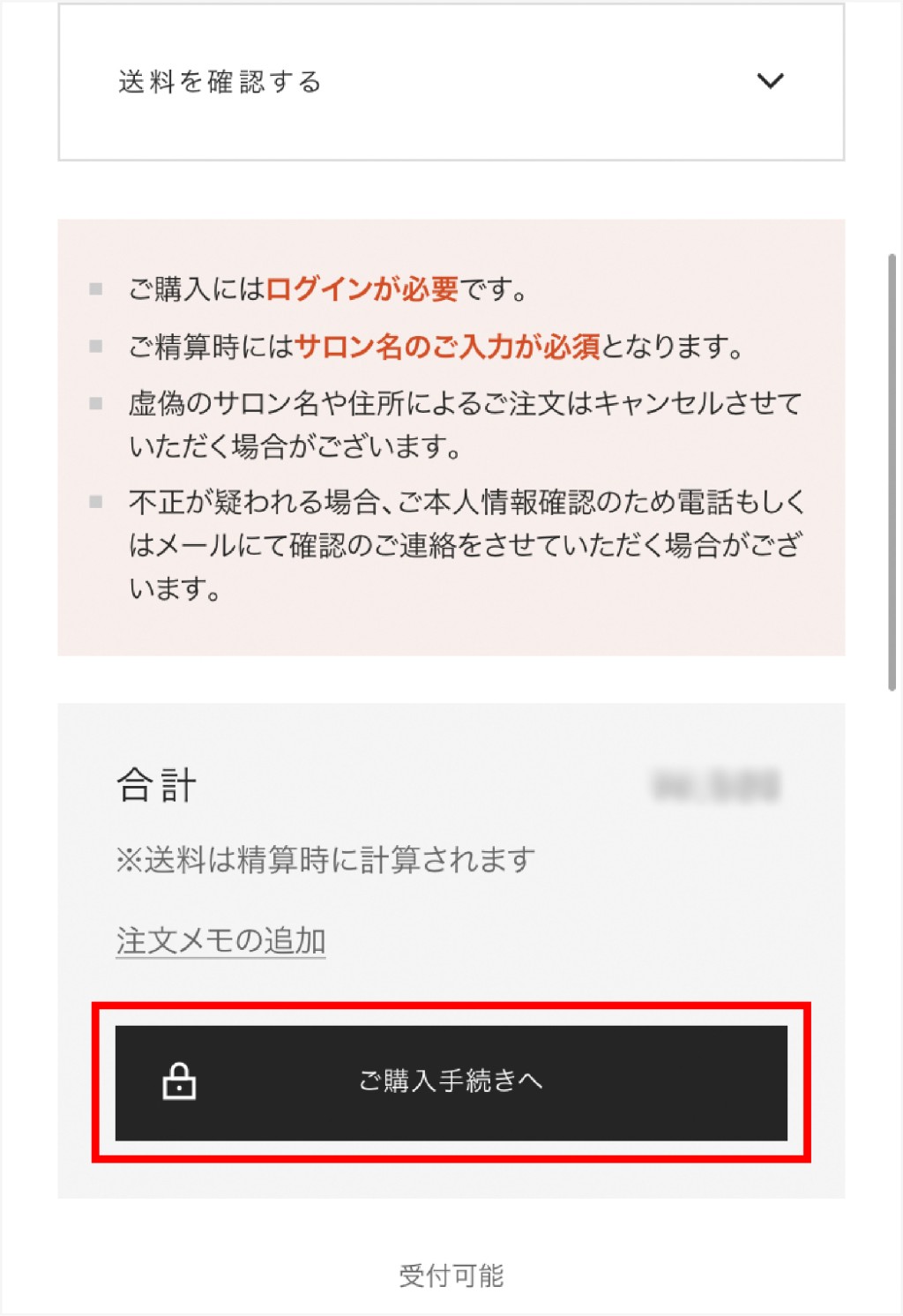 その後は通常通りチェックアウトを進めてください(姓名、サロン名、住所、電話番号の入力は必須)。
