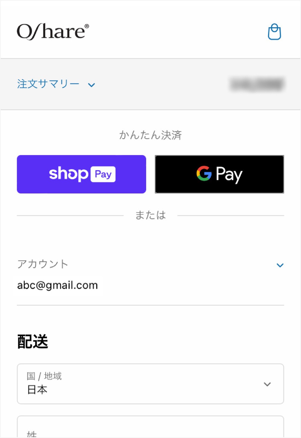 チェックアウト画面に移動します。